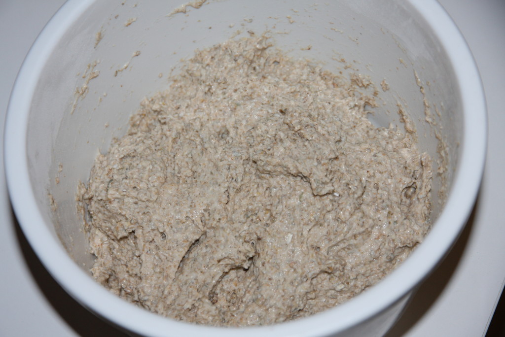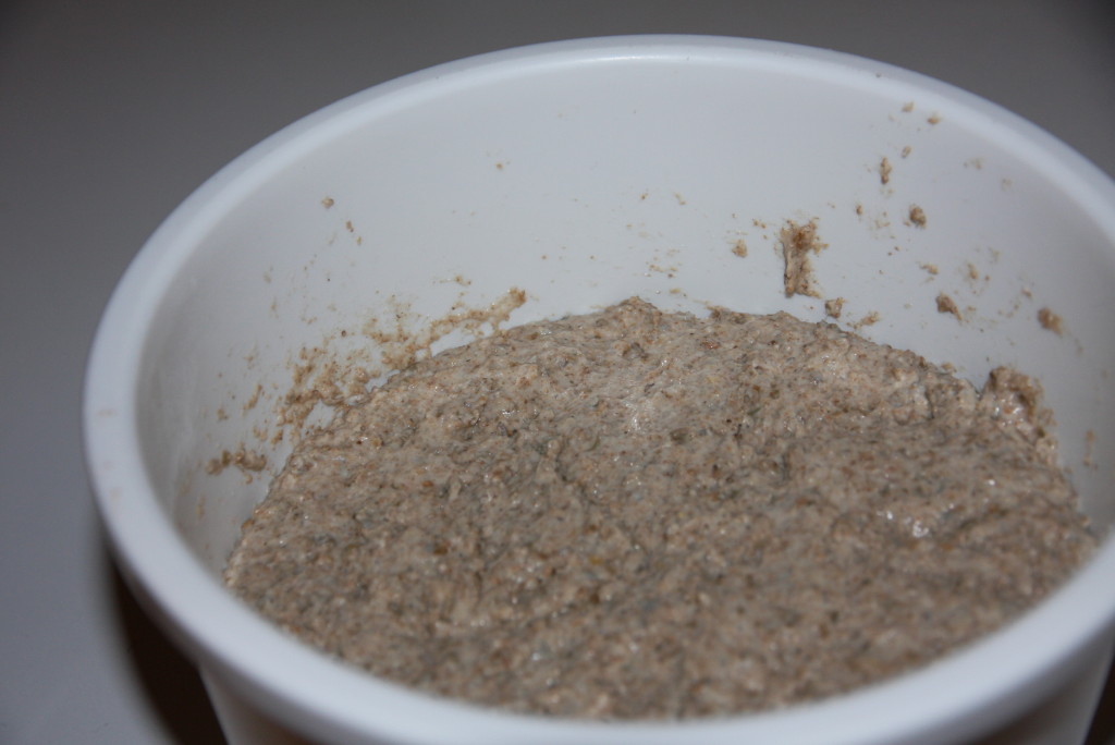 Start med å hell melet i en bakebolle. Løs så opp gjæren i kaldt vann og hell dette i bollen. Rør dette litt sammen før du tilsetter honning og salt. Rør alt sammen til grøtkonsistens.